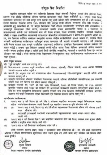 काठमाडौँ । विद्यालय शिक्षा विधेयकप्रति असहमति जनाउँदै निजी विद्यालय सञ्चालकहरुको संगठन नेशनल प्याब्सन र प्याब्सनले संयुक्त रूपमा आन्दोलन घोषणा गरेका छन् ।