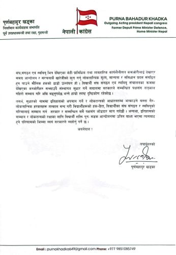 उनले सरकारको अधिनायकवादी कदमका रूपमा बुझ्न बाध्य भएका भएको उल्लेख गरेका छन् । उनले सुधारको नाममा इतिहासको अपमान गर्ने र लोकतन्त्रको आधारस्तम्भ भत्काउने कामहरू बन्द गर्न पनि आग्रह गरेका छन् ।